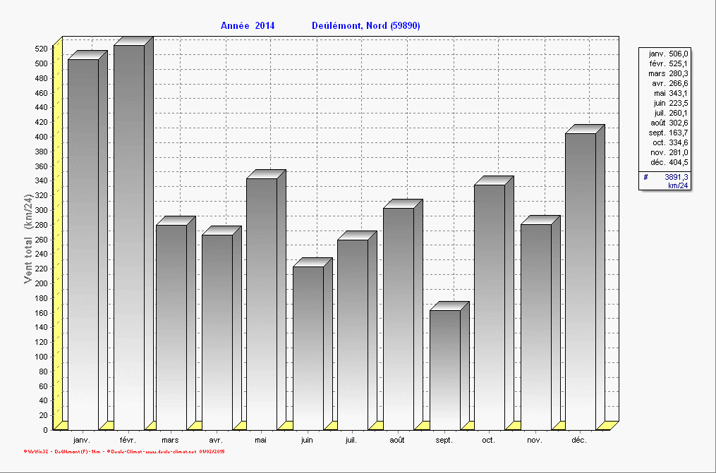 Vent total (distance que parcours le vent sur le mois à multiplier par 24)