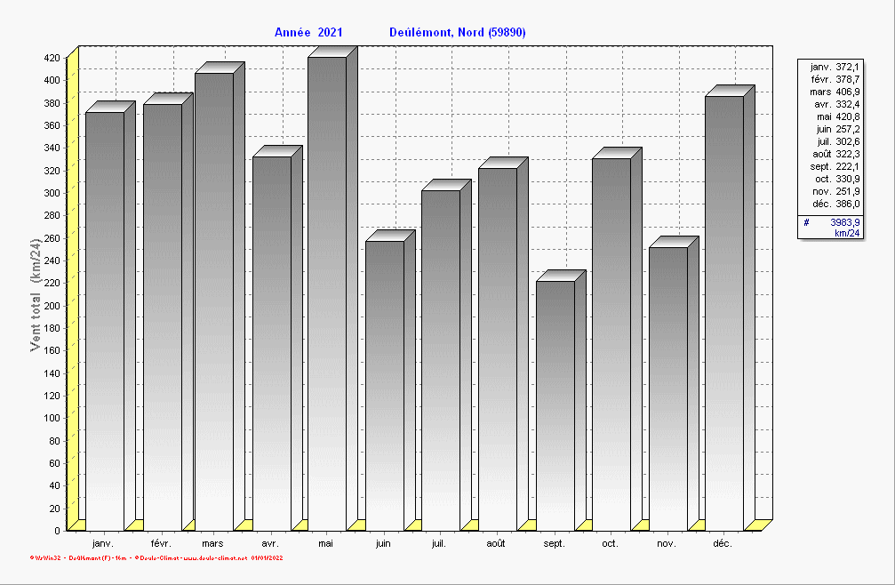 Vent total (distance que parcours le vent sur le mois à multiplier par 24)