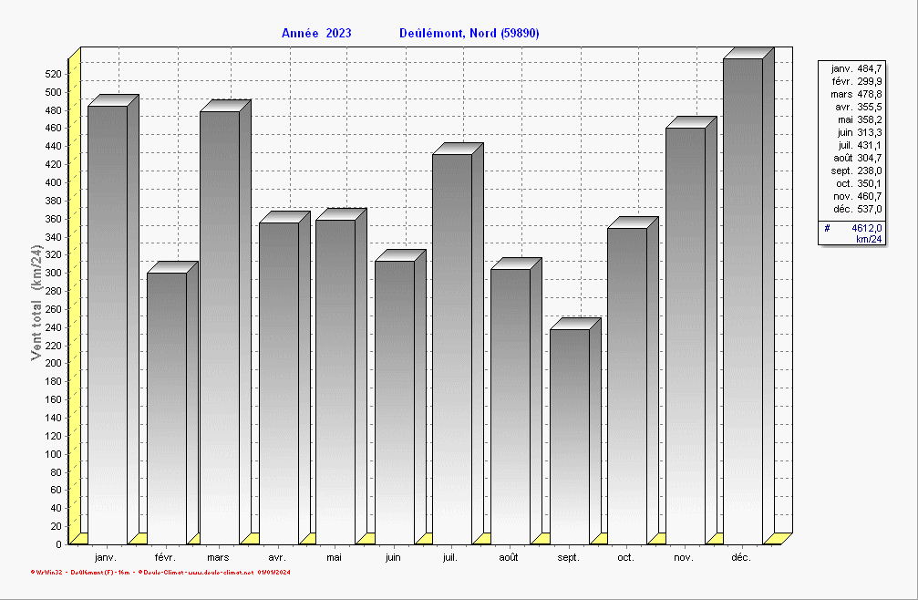 Vent total (distance que parcours le vent sur le mois à multiplier par 24)