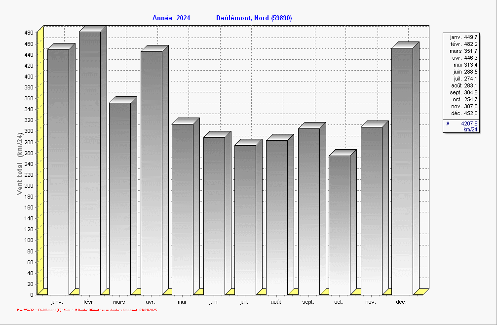 Vent total (distance que parcours le vent sur le mois à multiplier par 24)