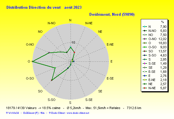Distribution de la direction du vent