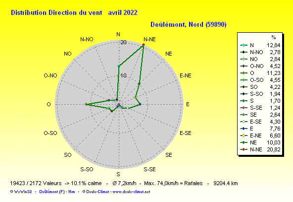 Distribution de la direction du vent