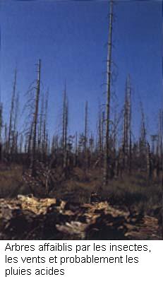 La pluie est une précipitation qui atteint le sol sous forme de gouttelettes d'eau liquide dont le diamètre varie entre 0,2 et 10 mm (1 cm). En général, leur taille se situe entre 3 et 6 mm. La pluie se développe souvent dans des nuages dont la température est inférieure à 0 °C. Donc, avant d'être sous forme liquide, les gouttelettes de pluie sont souvent des cristaux de glace ou des gouttes congelées. Ces particules congelées fondent lorsqu'elles pénètrent dans l'air plus chaud sous les nuages. C'est pourquoi elles arrivent au sol sous forme liquide.![]() L'accumulation d'eau au sol produite par la pluie est d'environ 0,5 à 2,5 cm/h.Les nuages qui donnent naissance à la pluie sont : le nimbostratus, le cumulonimbus, le cumulus, le stratocumulus et l'altostratus.La pluie verglaçanteLa pluie verglaçante se produit en hiver, lorsqu'une couche d'air chaud s'installe entre les nuages et le sol. Les flocons de neige qui tombent des nuages ont alors le temps de fondre complètement et de devenir des gouttelettes de pluie avant d'arriver au sol. Ces gouttelettes de pluie froide gèlent au contact du sol et des surfaces dont la température est inférieure à 0 °C. La pluie verglaçante produit alors une mince couche de glace, qu'on appelle verglas, au sol et sur les objets. Le résultat nous offre un paysage féerique mais dévastateur pour les plantes et les fils électriques ainsi que pour la circulation routière. ![]() Les pluies acidesLes pluies acides sont des chutes de gouttes solides ou liquides qui contiennent des composés chimiques ayant une acidité élevée.![]()