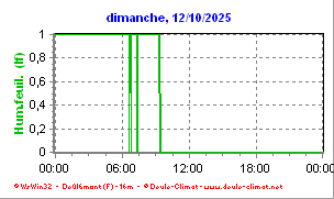•  La courbe fine verte représente l'humectation du feuillage en indice ou Leaf Wetness (Lf).