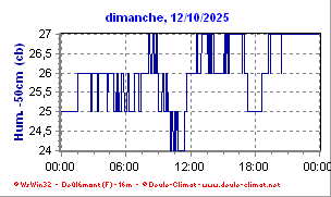 •  La courbe fine bleu foncé représente l'humidité du sol à 50 centimètres en Centibars (cB).