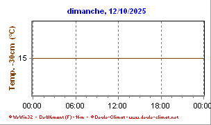 •  La courbe fine marron foncé représente la température du sol à 30 centimètres en degré Celsius (°C).