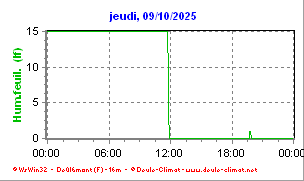 •  La courbe fine verte représente l'humectation du feuillage en indice ou Leaf Wetness (Lf).