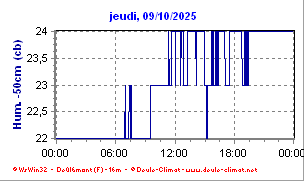 •  La courbe fine bleu foncé représente l'humidité du sol à 50 centimètres en Centibars (cB).