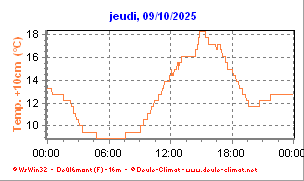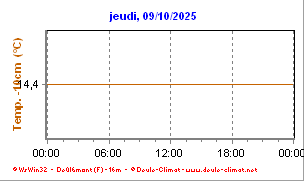 •  La courbe fine orange représente la température extérieure à 10 centimètres en degré Celsius (°C).