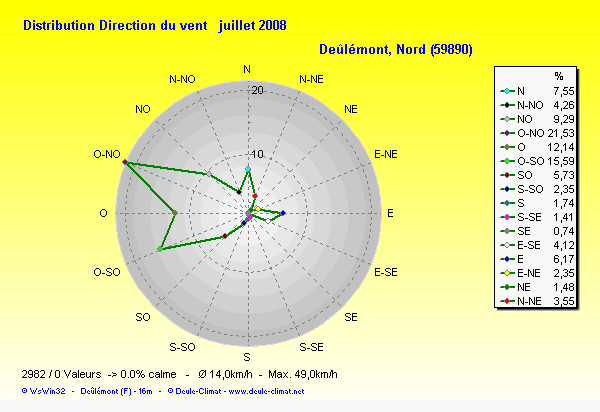 Distribution de la direction du vent