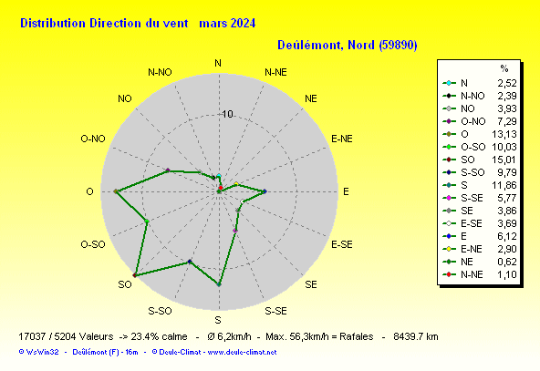 Distribution de la direction du vent