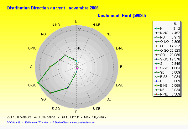 Distribution de la direction du vent